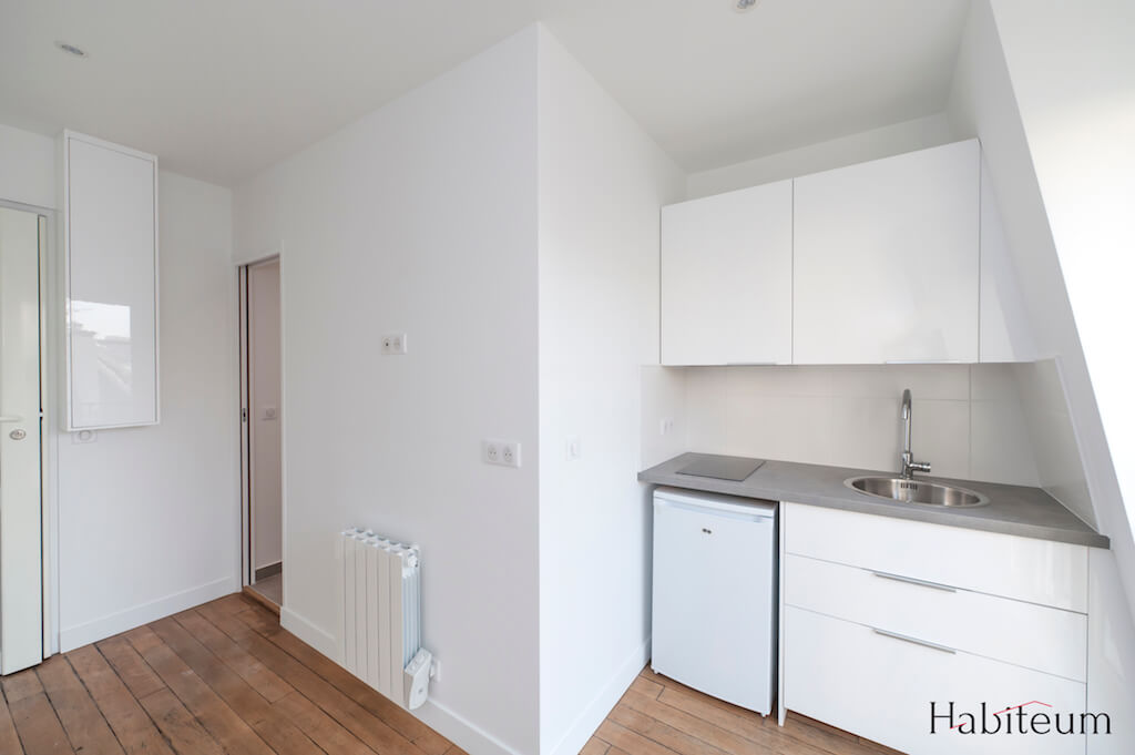 Quand nous avons pour la première fois visité cette chambre de bonne située au 6ème étage d’un immeuble du 16ème arrondissement de Paris, celle-ci était composée d’une pièce unique et vide de 11 m2. Cependant, grâce à une rénovation intelligente et une situation privilégiée avec vue sur la tour Eiffel, ce studio est aujourd’hui devenu un excellent investissement locatif.