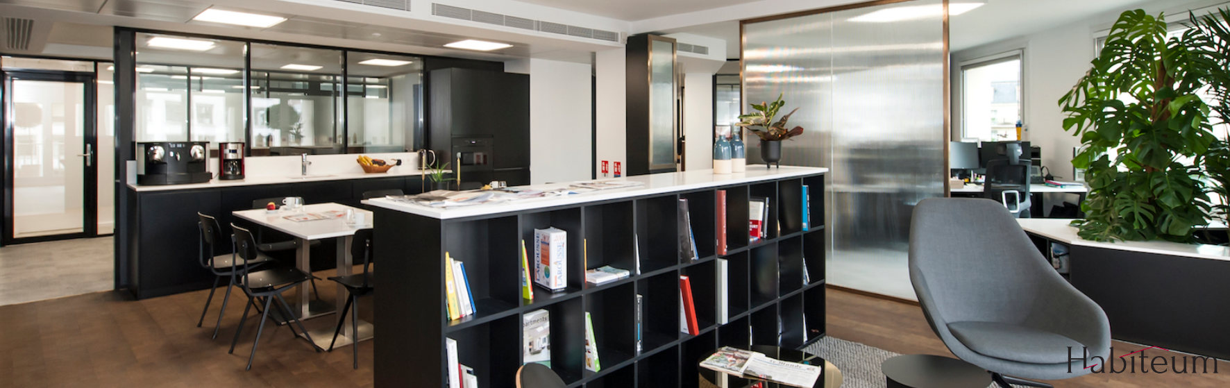 Tout ici a été pensé pour optimiser l’ergonomie et obtenir des bureaux les plus agréables et lumineux possible. Nous avons intégralement aménagé cette surface en installant de nombreuses cloisons vitrées, pour conserver au maximum la lumière naturelle. Trois salles de réunion, un grand open space, et plusieurs bureaux semi-cloisonnés ont été créés.
