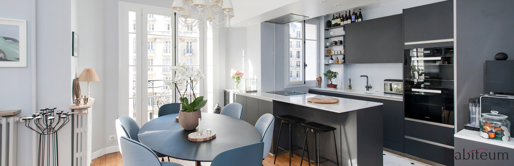 Situé dans le 16ème arrondissement, au 3ème étage d’un bel immeuble parisien, ce F3 n’était plus aux goûts de ses propriétaires. Ne souhaitant pas déménager pour autant, ces derniers ont donc fait confiance à HABITEUM pour leur proposer des solutions de rénovation en accord avec leurs nouvelles envies.