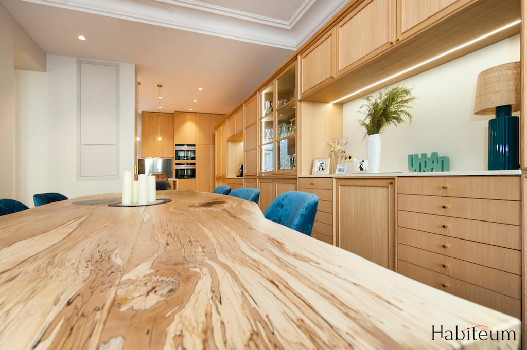 Nous avons donc travaillé en partenariat avec Studio Olivier Guyot Architecte, responsable des plans et de la nouvelle distribution des pièces, et les décorateurs d’intérieur Sandrine Kulakowski et Patrice Henry responsables notamment du choix des matériaux. HABITEUM est intervenu en tant que contractant général et maitre d’oeuvre pour jouer son rôle de chef d’orchestre entre les différents intervenants sur ce projet de rénovation.